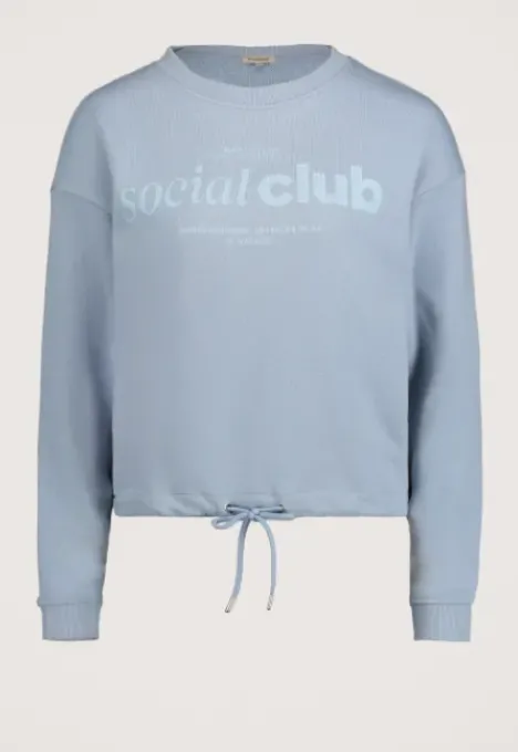 Dit is de Marella Sweater van het merk Madness. De sweater heeft een ronde hals, een opdruk aan de voorkant en een trekkoord aan de onderkant.