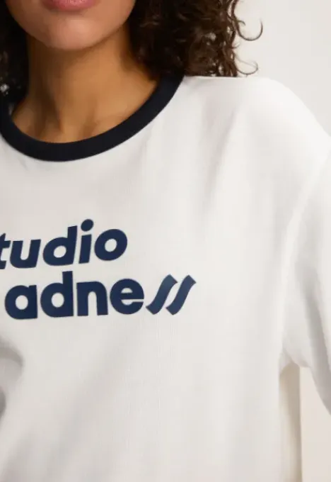 Dit is het Moon T-shirt van het merk Madness. Dit T-shirt heeft een loose cropped fit en een ronde hals. Het katoenen T-shirt heeft een logo detail op de borst.