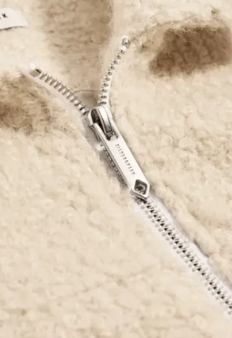 Dit is het Taffy Jack van het merk Silvercreek. Dit teddy jack heeft geribde mouwboorden, een ritssluiting, een normale kraag en is aan de onderkant recht afgewerkt. Er loopt een naad over de jas aan de voor- en achterkant ter hoogte van de borst voor extra detail.