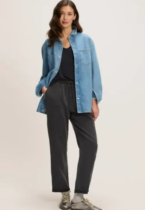 Dit is het Touria Denimjack van het merk Silvercreek. Dit deminjack is gemaakt van 100% katoen, heeft lange mouwen, een drukknoopsluiting, twee borstzakken, manchetten met drukknopen en het logo van Silvercreek staat op de drukknopen.