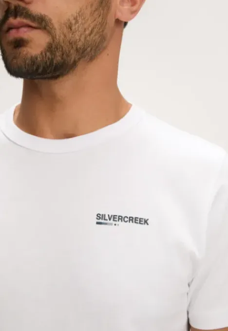 Dit is het Fean T-Shirt van het merk Silvercreek. Het T-shirt heeft een regular pasvorm, een ronde hals en korte mouwen. Het T-shirt heeft en rubberen Silvercreek logo op de borst en op de rug een backprint.