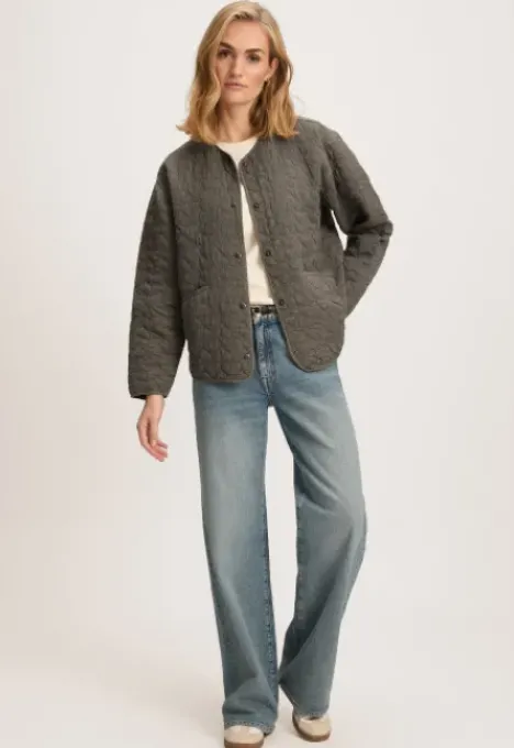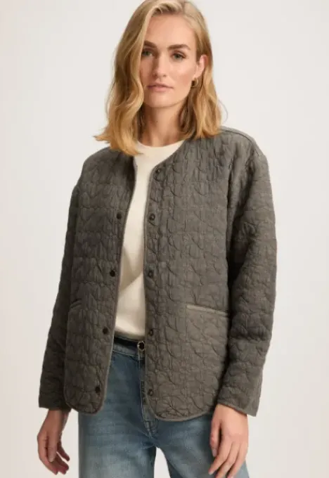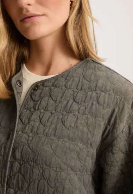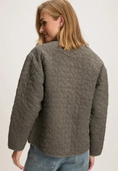 Dit is het Milla Jack van het merk Madness. Dit jack heeft een all-over gequilt hartjes patroon, een drukknoopsluiting, paspelzakken en ronde afwerkingen.