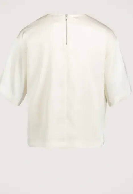 Dit is de B2090200901 Kerry Blouse van het merk Silvercreek. De top is gemaakt van gerecycled polyester en heeft een satijnen look. Het item heeft een zilveren rits aan de achterkant van de nek.
