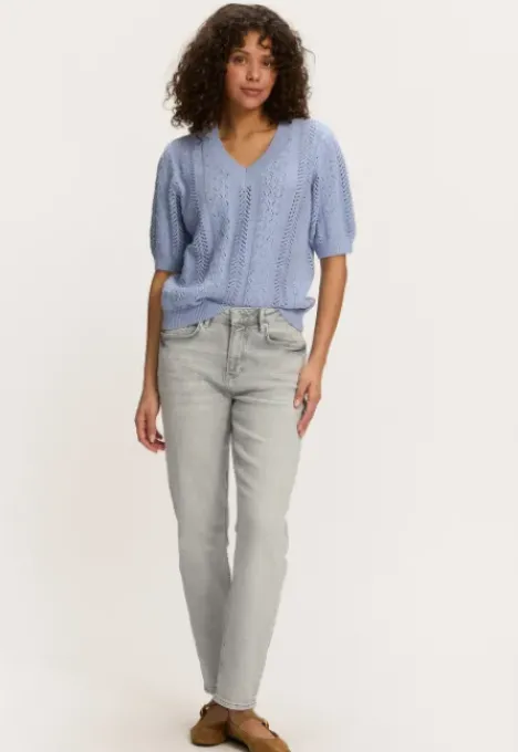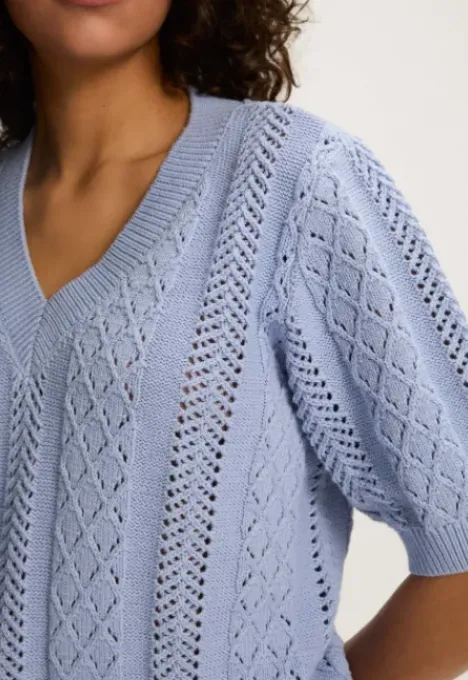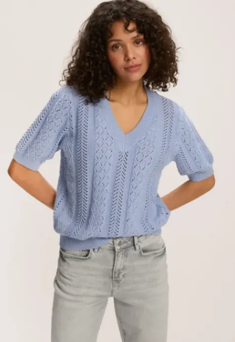 Dit is de B2080200221 Posey Trui van het merk Silvercreek. De open gebreide trui heeft een regular pasvorm, korte mouwen en een V-hals.
