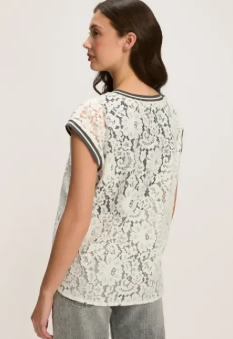 Dit is het B2090200899 Kleo T-shirt van het merk Silvercreek. Het T-shirt is van kant en heeft een boxy fit.