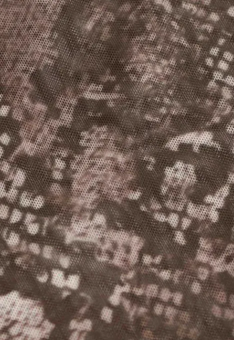 Dit is het Marlena T-Shirt van het merk Madness. Het mesh T-shirt heeft een ronde hals, korte mouwen en is gemaakt van een stretch stof. Verder heeft het T-shirt een all over print en geruffelde zoomen.