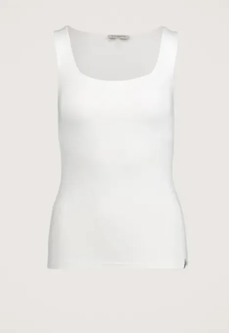 Dit is de Bo Top van het merk Silvercreek. De top is mouwloos, heeft een ronde hals en het merk van Silvercreek staat op het label aan de onderkant van de top.
