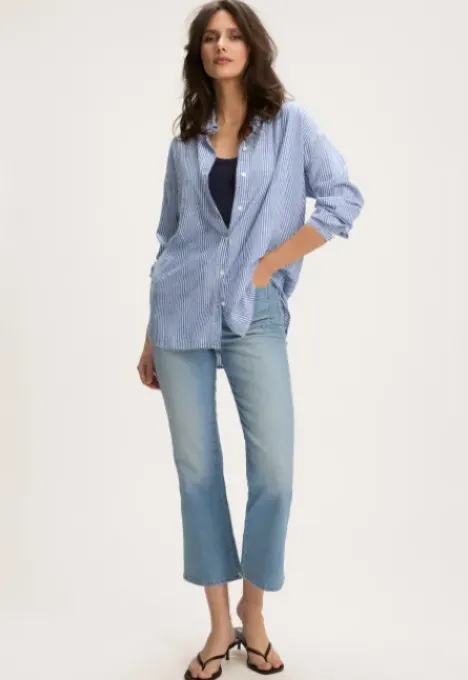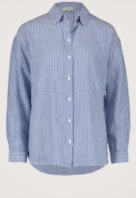Dit is de Kelsa Blouse van het merk Silvercreek. De blouse heeft een oversized pasvorm en een streeppatroon. Aan de voorkant heft de blouse een knoopsluiting en aan de achterkant een knoopsluiting op de back yoke. Verder heeft de blouse manchette met knopen en een slit.