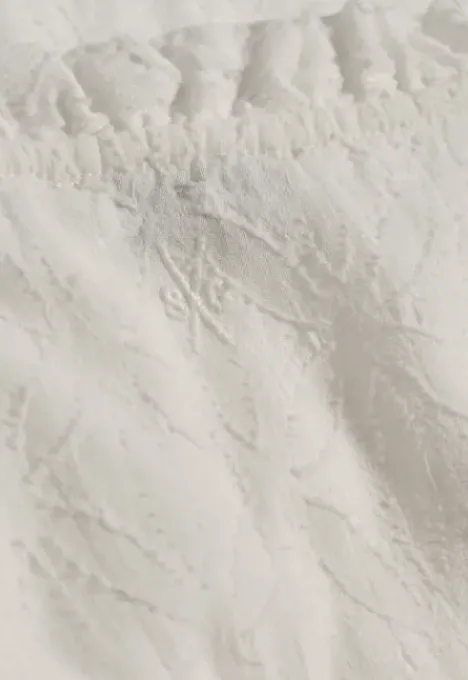 Dit is de Kamilla Blouse van het merk Silvercreek. Deze blouse heeft een ronde hals met een spit en een knoopsluiting bovenaan de hals. De boorden zijn afgewerkt met een ruffle accent en onderaan de mouw heeft de blouse een rib detail. De blouse heeft een all over patroon.