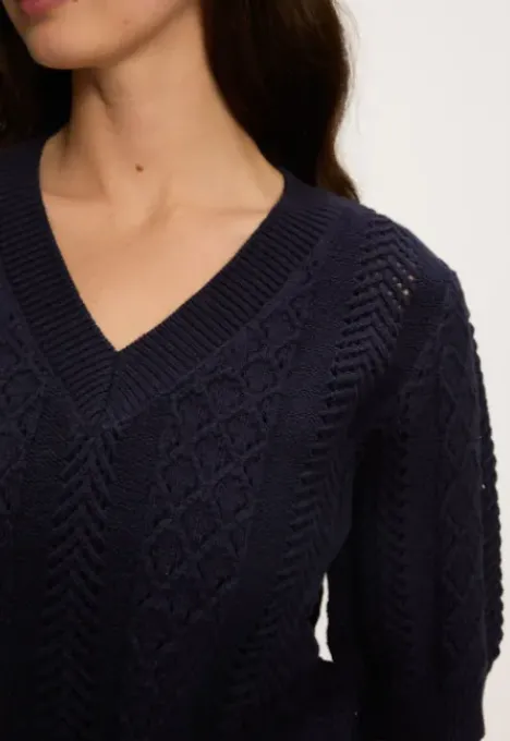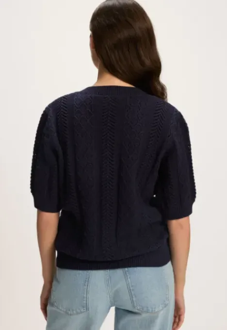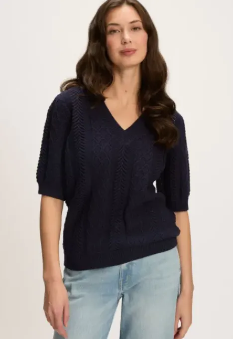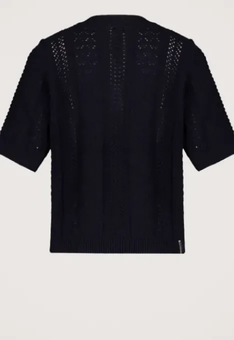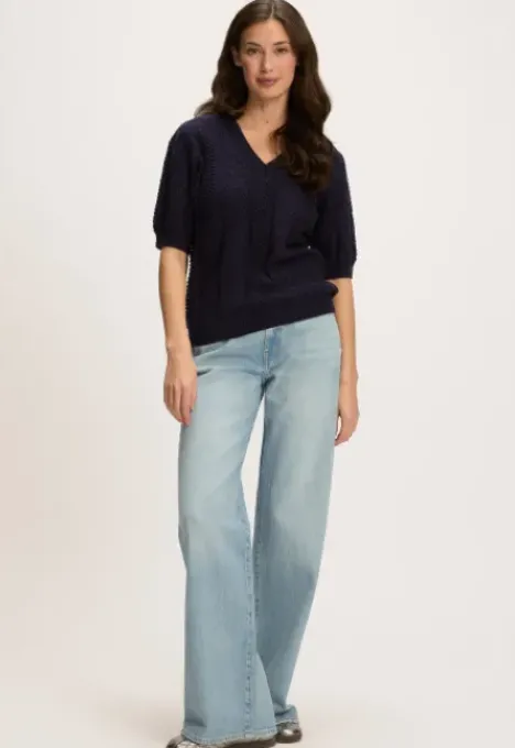 Dit is de B2080200221 Posey Trui van het merk Silvercreek. De open gebreide trui heeft een regular pasvorm, korte mouwen en een V-hals.