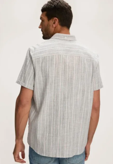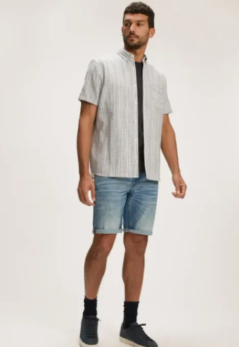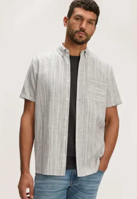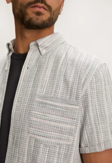 Dit is het Seoul Overhemd van het merk Silvercreek. Het overhemd heeft een regular pasvorm, een polokraag en heeft korte mouwen met een omslag. Het overhemd heeft een gestructureerd patroon. Verder heeft het item een knoopsluiting en een borstzak.