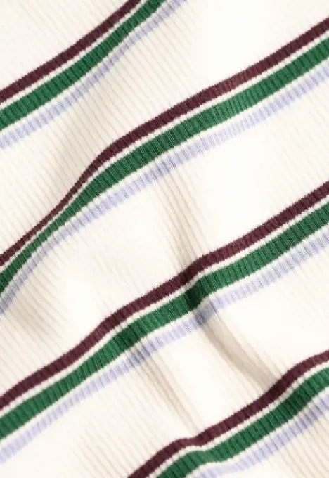 Dit is het Mea T-Shirt van het merk Madness. Het gebreide T-shirt heeft een rib gebreide ronde hals, korte mouwen en veel stretch. Verder heeft het T-shirt een all over streeppatroon.