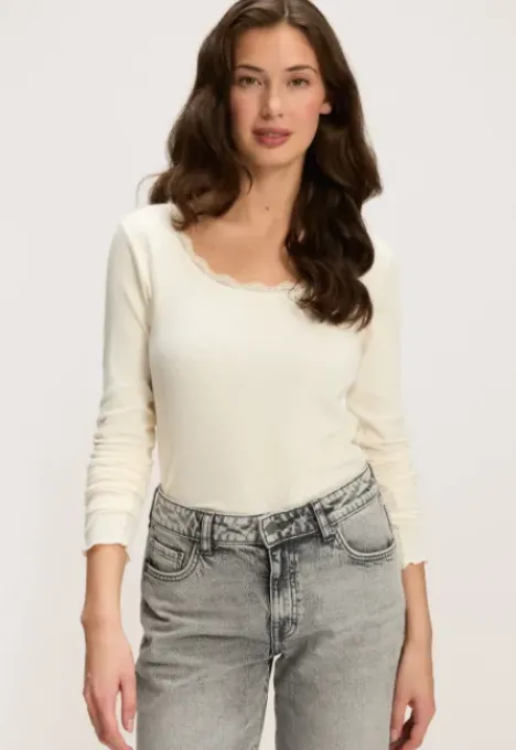 Dit is de Sade Longsleeve uit de MOVE collectie van het merk Silvercreek. De longsleeve is ribgebreid, heeft een ronde hals met een kante rand en de boorden van de mouwen en zoom zijn opgekruld.