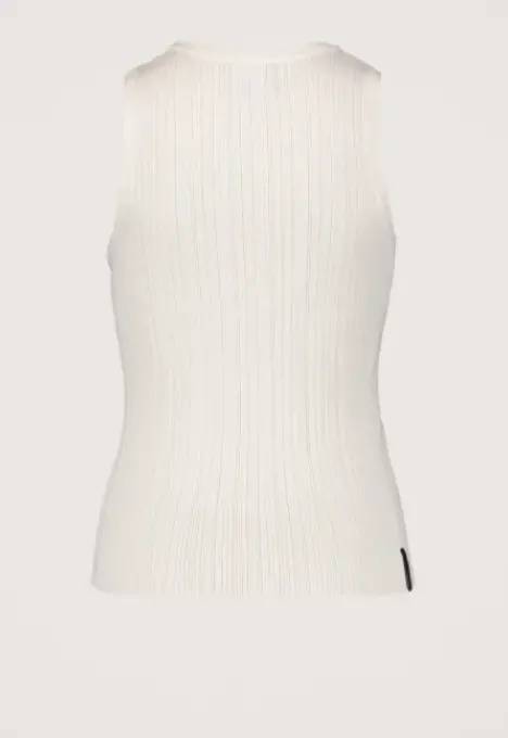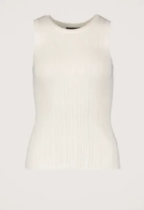 Dit is de Patti Top van het merk Silvercreek. De top heeft een ronde hals, is mouwloos en heeft rib gebreide hals- en mouwboorden. Verder zit er een streeppatroon in de stof en de stof is erg elastisch.