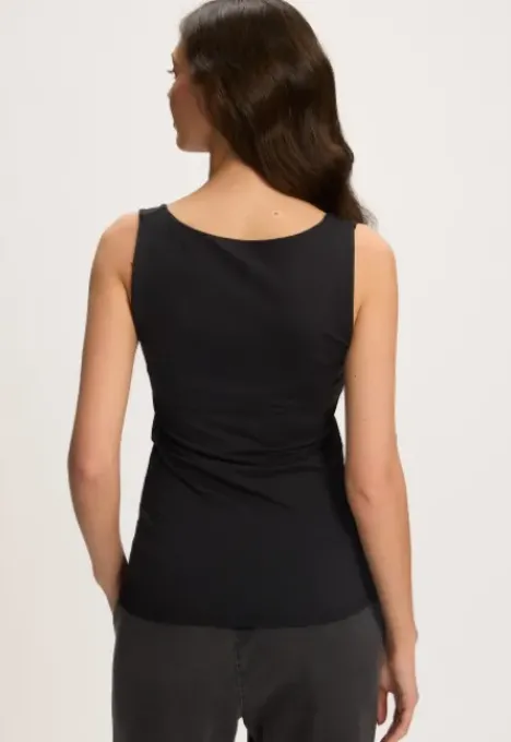 Dit is de Bo Top van het merk Silvercreek. De top is mouwloos, heeft een ronde hals en het merk van Silvercreek staat op het label aan de onderkant van de top.