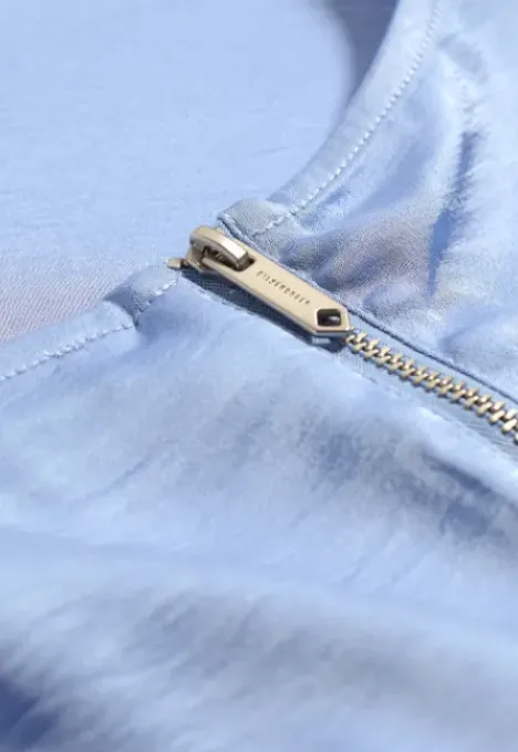 Dit is de B2090200901 Kerry Blouse van het merk Silvercreek. De top is gemaakt van gerecycled polyester en heeft een satijnen look. Het item heeft een zilveren rits aan de achterkant van de nek.