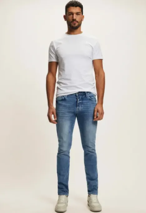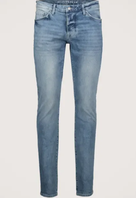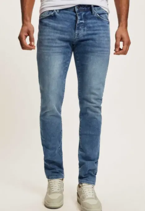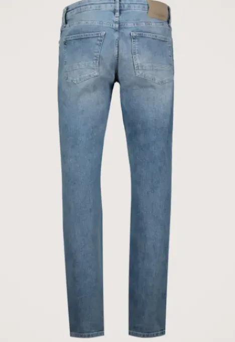 Dit is de Porter Slim Tapered Jeans van het merk Silvercreek. De PORTER in Denim Used is een slim fit jeans met een comfortabele, moderne pasvorm. De jeans zit aangesloten in het bovenbeen en loopt toe richting de enkel, voor een slank silhouet zonder dat het strak aanvoelt. Deze uitvoering is gemaakt van een comfort stretch denim met 2% stretch. De stof voelt compact en stevig, maar beweegt moeiteloos mee – precies wat je wilt bij een jeans die aanvoelt als een echte denim, maar wél comfortabel draagt. De jeans is een 5-pocket model en heeft een knoopsluiting. De wassing begon op een diepe indigo basis en is zorgvuldig afgewassen tot een frisse, lichtere kleur. Door de kimbels in het top block en de subtiele puckering langs het been ontstaat een authentiek used-effect met mooi contrast: van donkerblauw in de dieptes tot lichtblauw op de highlights. Een uitgesproken, maar draagbare look die karakter toevoegt aan je outfit. Draag de PORTER aangesloten voor een slanke fit zonder knelpunten. Liever wat ruimer bovenin? Neem dan een maat groter voor extra comfort op de heup, terwijl de pijp mooi smal blijft.