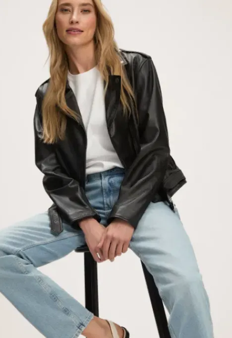 Dit is de Tansu BikerJas is van het merk Silvercreek. Deze jas is van een mooie soepele PU leer kwaliteit. De jas heeft epauletten op de schouders en een riempje aan de onderkant.